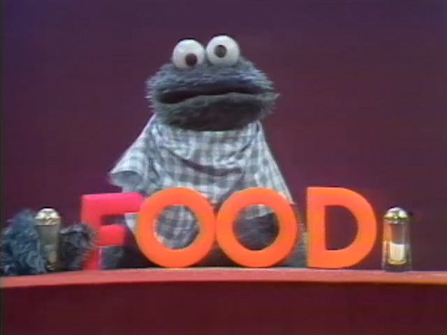 Muppets | Cookie Monster: FOOD — The word FOOD is gastronomically prepared by Cookie Monster. (First: Episode 0601) |