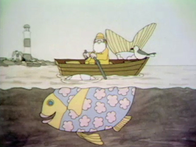 Cartoon | Fisherman Jones demonstrates in, on and under with the help of a big fishy. (First: Episode 0370) |
