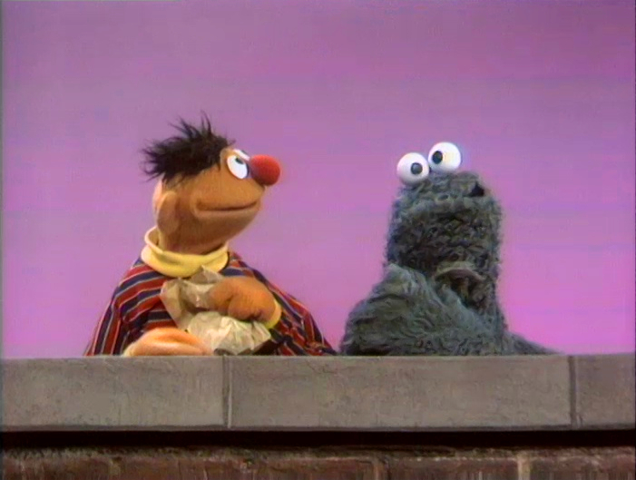 Muppets | Cookie Monster and Ernie: Hope — Ernie uses a brown paper bag to discuss the concept of hope with Cookie Monster. (First: Episode 0233) |