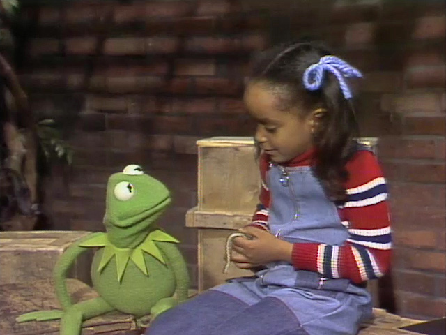 SCENE 2 | Kermit the Frog introduces a talk about body parts compared between people and animals. Yvette brings in her pet snake and Kermit has a hard time finding any similarities, then splits the scene when he discovers that some snakes eat frogs. |