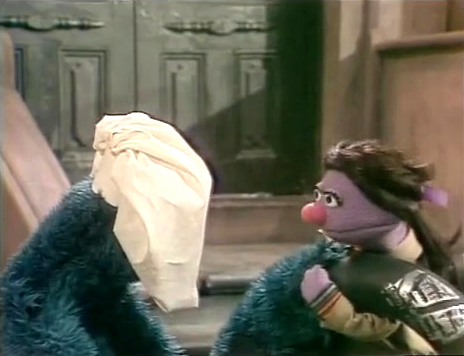SCENE 2 | Bob encounters Grover, feeling upset because Oscar the Grouch made him feel angrier earlier, but he was unable to properly express such a feeling due to his caring nature. Bob feels the same and the two practice trying to make the other angry. Oscar overhears them and mocks them and tells them to buzz off. The two snap right back at the grouch, who is impressed by their attitude. Bob and Grover also feel proud of how angry they were able to get and go off to celebrate with some apple juice. |