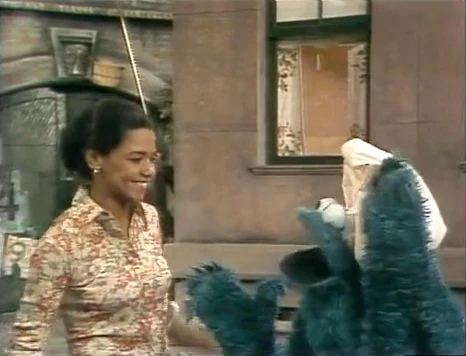 SCENE 1 cont'd | As he waits for the baker, a lady (Peter Friedman) comes by with a white coat, who says she helps people feel better. She ends up being a doctor, not a baker. Another person (Sonia Manzano) comes by holding an inner tube, which Cookie Monster assumes is a giant cookie (so he bites it), but this person is a gas station attendant. |