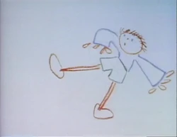 Cartoon | A boy is drawn, but he doesn't have knees at first. |