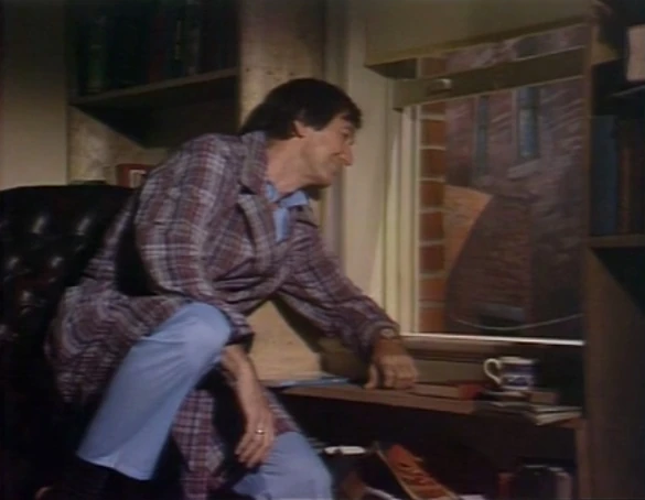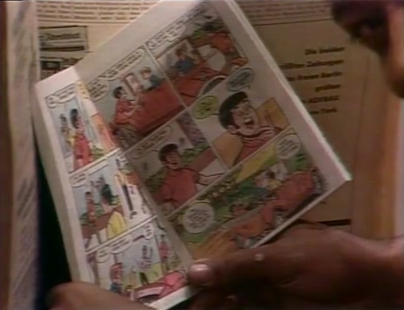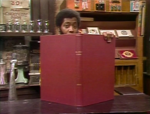 SCENE 2 | At Hooper's, David appears to be reading a big book. The camera angle switches, revealing that he's reading a little comic book hidden behind the big one. |