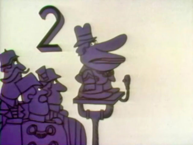 SCENE 3 | Oscar the Grouch gathers every one around to watch his latest home movies and promises it won't be like last time when the screen was all black and they couldn't see anything. This time the screen is all white. Oscar insists there's nothing wrong with the video, and that it's merely a white cow in a snowstorm, three cats fighting in a sack of flour, a jet plane flying into a cloud, and the best part: a credit sequence written by Oscar with white chalk on a white bed sheet. |