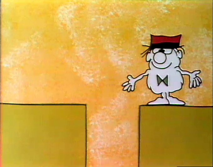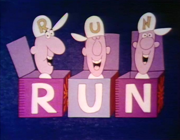 Cartoon | Men in boxes sound out the word RUN. (First: Episode 0369) |