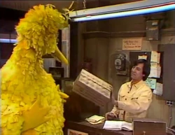 SCENE 1 | Luis gives Big Bird a box to put things away while he cleans out his nest, but Big Bird realizes he'll need more. He goes to Hooper's Store and places his box on one of the stools. David gives him one, then another one, and quizzes Big Bird on adding all two boxes together; Big Bird keeps saying he has three. David is driven crazy until Big Bird tells him that he already got a box from Luis, showing him the one that had previously been out of David's view. |