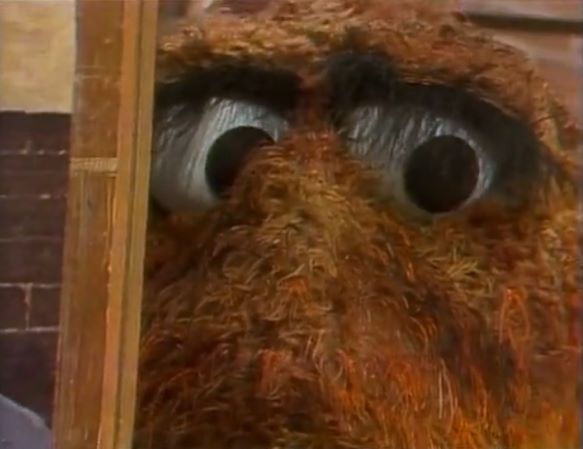 SCENE 3 | Snuffy is now practicing being afraid, but this time Big Bird sticks around to help his friend. Big Bird tells Snuffy to wait while he goes out so he can make some scary noises for him to react to, though Gordon and Susan find the situation with his "imaginary" friend ridiculous. Big Bird makes scary sounds outside, including ghost moans and a "wubba-wubba-wubba" chant, which frightens Snuffy so much that he runs away. Big Bird enters with Gordon and Susan (who return after hearing Big Bird's noise), only to find that Snuffy is nowhere in sight. Gordon and Susan leave while Big Bird stares at the mirror, "practicing" feeling lonely. |