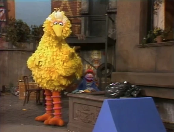SCENE 5 | Big Bird continues to excel at the game while Marty keeps losing. Marty goes into a tirade similar to Big Bird's from earlier and starts asking around for someone else to play with. Big Bird wonders why he's being such a poor sport, then realizes he was acting just the same before. He goes over to Mr. Hooper on his delivery cart to apologize, adding, "You can beat me at checkers any old time." Mr. Hooper accepts the apology with a kiss. |