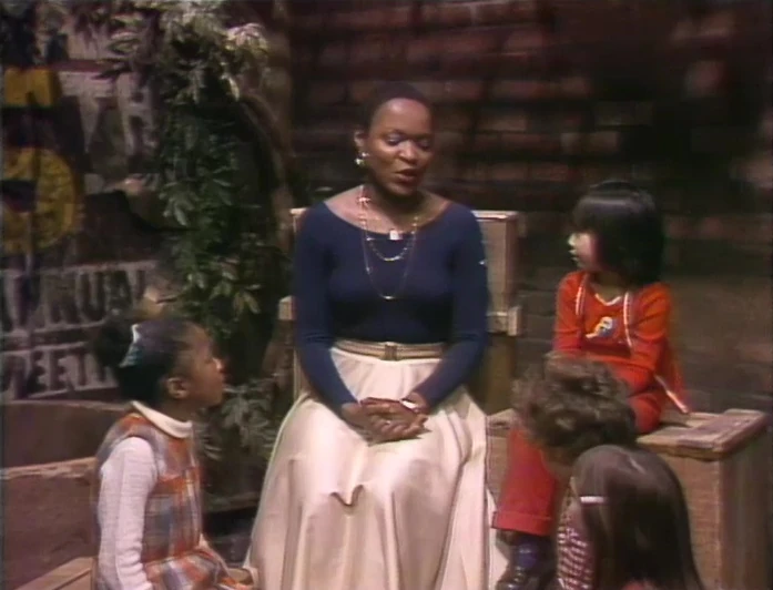 Muppets | Roosevelt Franklin Elementary School: Roosevelt Franklin teaches the class the difference between "here" and "there". He demonstrates by having a letter for Hardhead Henry Harris (here), and delivering it to him (over there), with Smart Tina portraying a mailbox, and Baby Breeze taking it to him. Upon reading the letter, Harris is insulted and chases Roosevelt. (First: Episode 0713) |