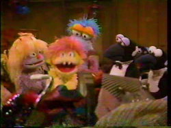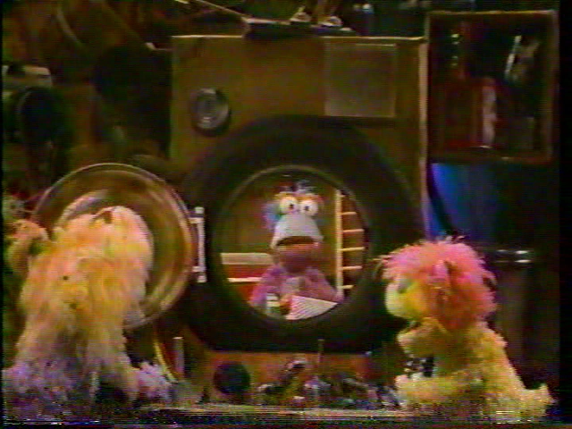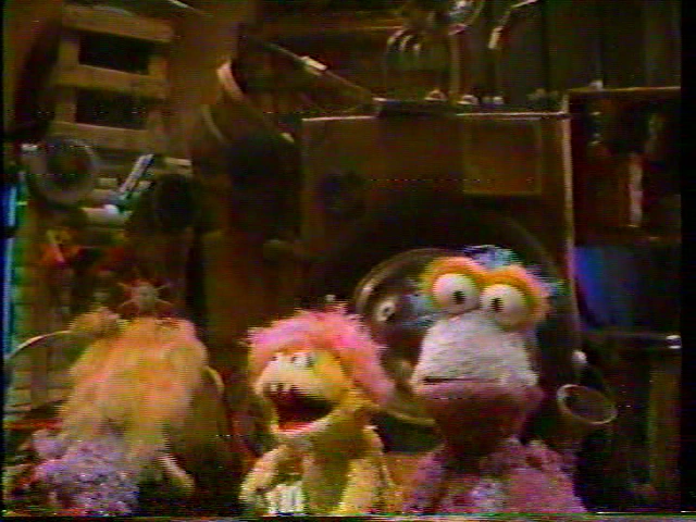 Nicky Napoleon and His Emperor Penguins come in through the basement window, they want to break into the world of TV. Scooter puts Tug, Molly and Boo into the basement whilst he cleans up the mess that they had made upstairs. They discover all the cool junk in the basement and realize that they can have fun using their imaginations. A lightning bolt comes in through the window and sends a signal through the pile of junk, turning it into a TV set that the monsters can use to transmit to the rest of the house. Gonzo appears in the junk TV set... |