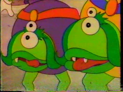 The Monsters realize that as they have their own TV show they will need a theme tune. Nicky Napoleon takes this as his cue to come out of hiding and introduce him and his band. Boo sets them their first assignment; music for his 'Pigs in Space' story! |
