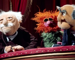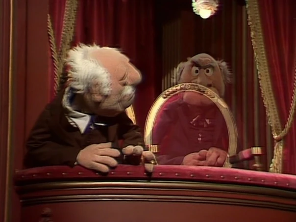 Just as Statler admits that watching the show was better than sitting home and watching television, Mahna Mahna invades their box. |
