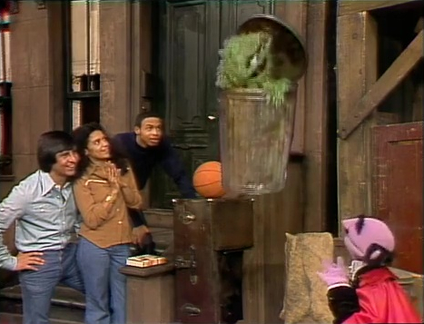 SCENE 1 | Luis, Maria, Jay and Oscar the Grouch watch as the Amazing Mumford demonstrates the art of Siamese levitation, aka making things go up and down without touching them. He magically makes a book and basketball fly up and down through the air. Everyone is impressed but Oscar, who asks Mumford to try the trick on something bigger. Mumford complies by sending Oscar's trash can skyward, then brings it crashing back to Earth. |
