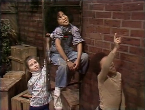 CLOSING SIGNS | Kermit and a girl hold the Sesame Street sign, while Maria holds the CTW sign. |