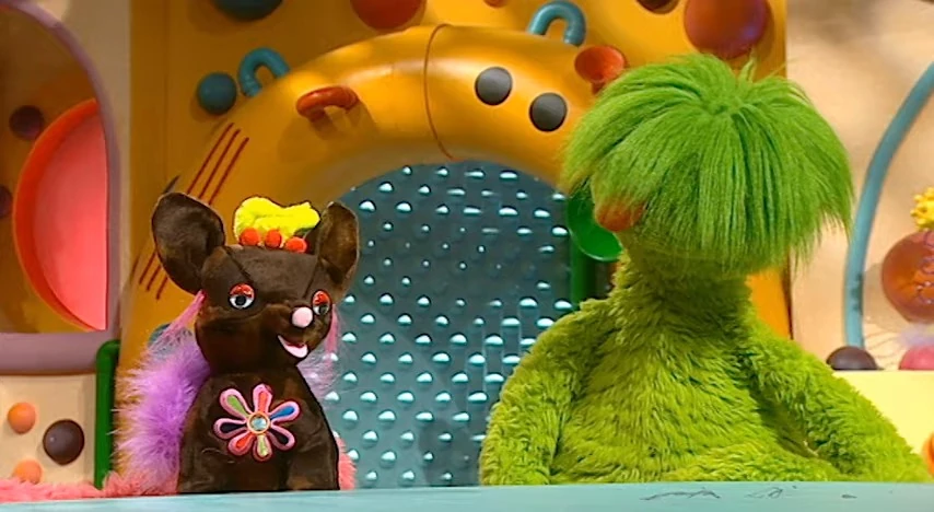 Tula wants to make a toy but isn't sure what kind, while Groove finds a squeaky dog toy he names Squeaky. However, a dog starts barking outside, leading Iver to ask, "What can we do to stop the dog outside the Hoobmobile going 'woof woof'?"