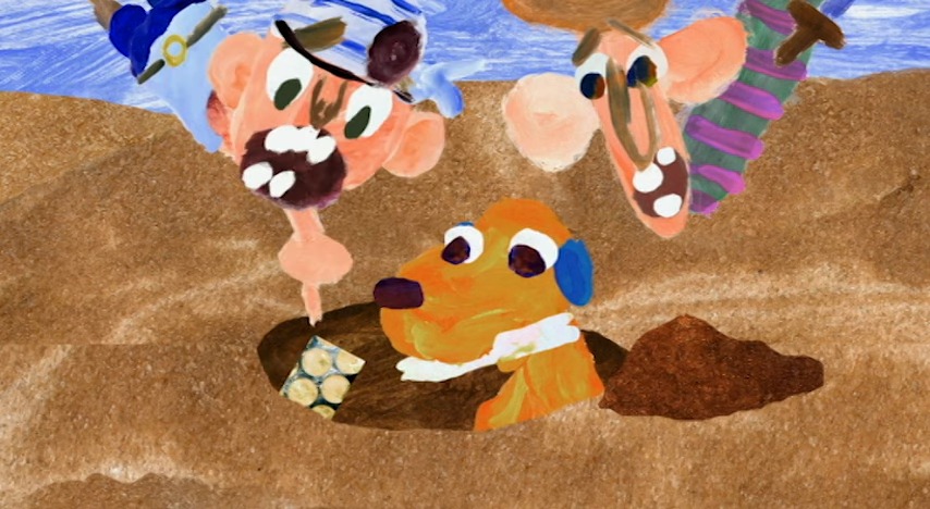 Hubba Hubba shares the story of Duna the dog who wanted to bury her bone but was scolded everywhere she tried (including her owner's garden), until she accidentally uncovered treasure for some pirates and was finally praised. After that, she never dug up the garden again. The Hoobs order a bone from Hoobnet, thinking it might do the trick, but alas, it does not.