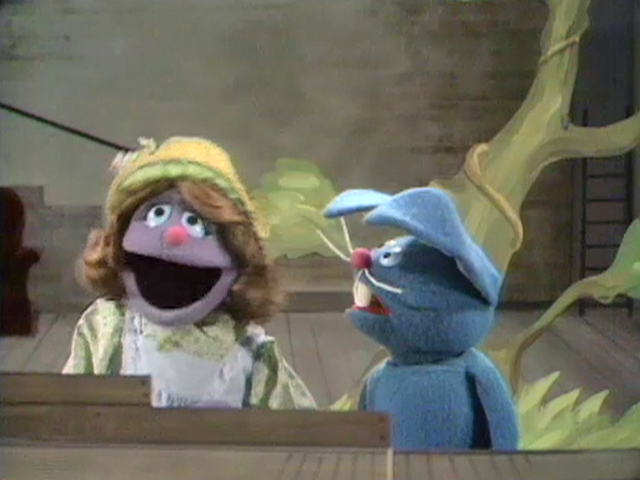 Muppets | Beautiful Day Monster is part of a group of cheerleaders who cheer up to the letter F. When the leader asks what "ABCDEF" spells, they are all stumped, and Beautiful Day Monster comments on how weird that is. (First: Episode 0094) |