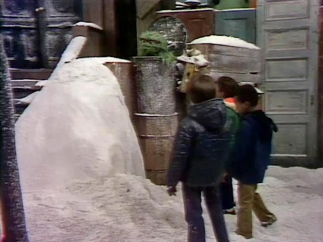SCENE 5 | Oscar thinks over everything he did to earn him compliments this morning, so he vows to return all the snow to where it was. The kids approach and ask him if he wants the pile of snow. Oscar says he doesn't, so the kids claim it for building a snowman and thank him for his generosity. |