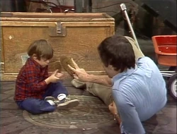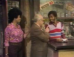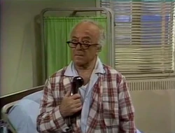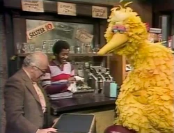 SCENE 1 | Mr. Hooper, dressed in a suit, finishes checking his overnight bag while at his store. Big Bird wonders where he’s going and wants to learn in the form of a game, so Mr. Hooper gives him clues: it’s got beds, it’s a place where tests are taken, it's where he’ll find out about his health, and most of the people there dress in white clothes. Susan says he’s going with him to the hospital for a checkup, which confuses Big Bird since he believes that the hospital is where people either go to be born or when they're very sick. Mr. Hooper explains that he is going for a checkup and says that it's important for a person his age to see how well they are doing. After Mr. Hooper and David give some final advice to each other, Mr. Hooper leaves with Susan. |