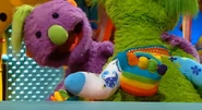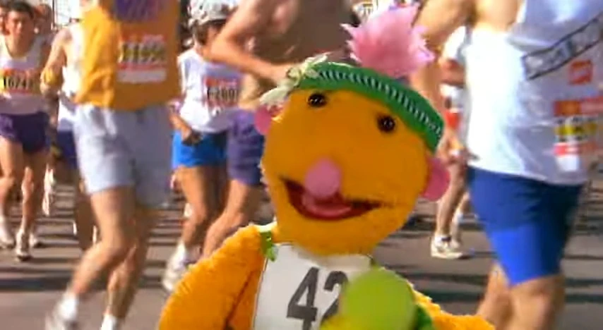 Groove tries hopping, rolling, and a combination of the two, all of which fail. Roma reports from a marathon, where she explains that running also keeps you fit, yet Groove still refuses, saying it's not fun. He visits the Tiddlypeeps once more and learns about a chasing game, which he finds very fun.