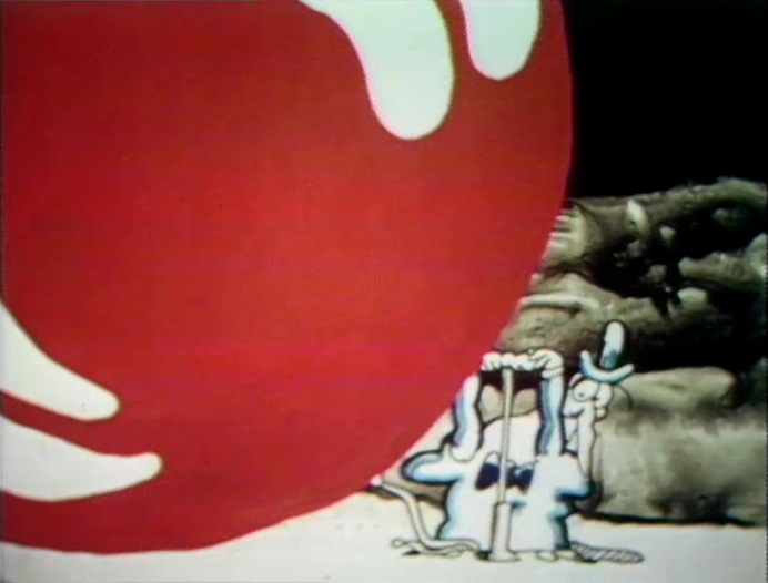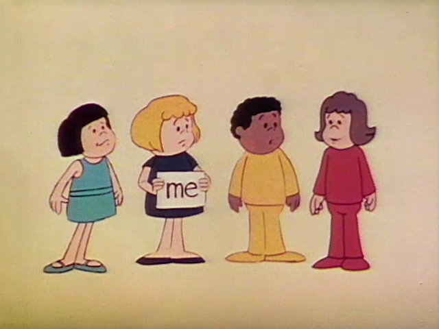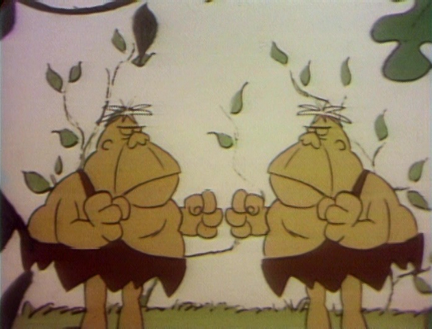 Cartoon | Two cavemen argue, each chanting "Me!" A large monolith bearing the word ME puts fear in both of them. (First: Episode 0793) |