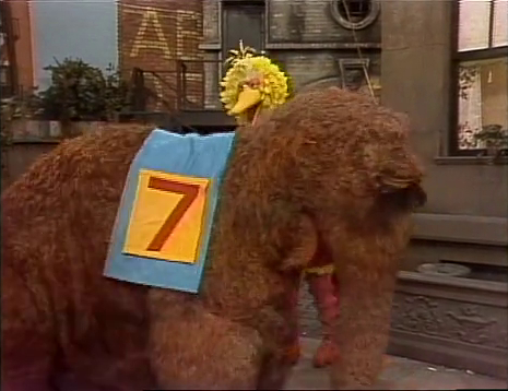 SCENE 1 | Mr. Snuffleupagus is competing in the Great Snuffleupagus Derby, named such because the winner gets a derby hat. He wears a sheet with the number 9, indicating his spot in the race. He asks Big Bird to watch his bucket of orange juice so he can have a refreshing drink as he passes by mid-race. The derby begins and Snuffy takes off. Big Bird sees other Snuffleupaguses pass by, thinking they're Snuffy, until he sees they're not wearing his number. Big Bird eventually drifts off to sleep, just before Snuffy arrives and slurps down the juice. Big Bird stirs and thinks someone else has drank it all, when Snuffy returns, wearing his victory derby and sets things straight. The two both take a nap together. |