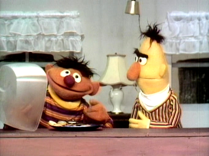 | Muppets | Ernie and Bert: Ernie Prepares to Do the Laundry — Bert makes his best attempt at getting Ernie to properly fill up the laundry basket. (First: Episode 0458) | |