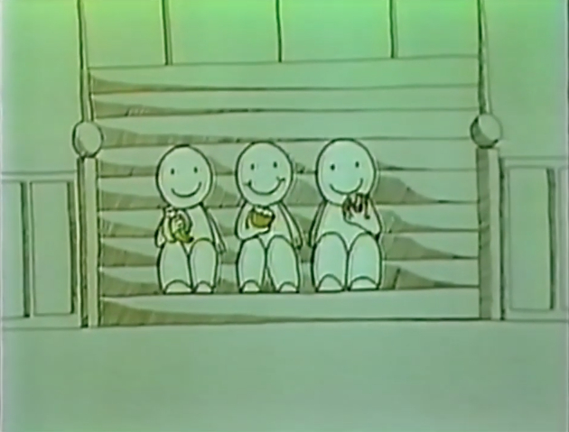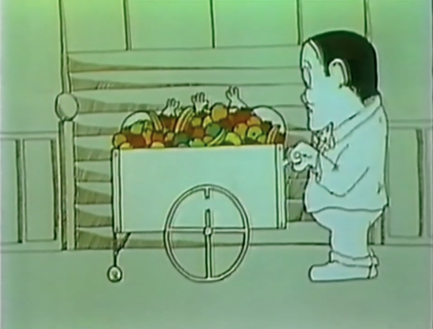 | Cartoon | Before and after: Several kids are sad, but become happy when a fruit vendor appears. (First: Episode 0631) | |