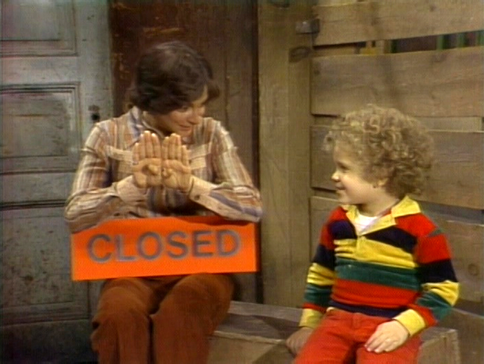 | Cast | Linda and a boy sign the word "CLOSED." (First: Episode 1082) | |