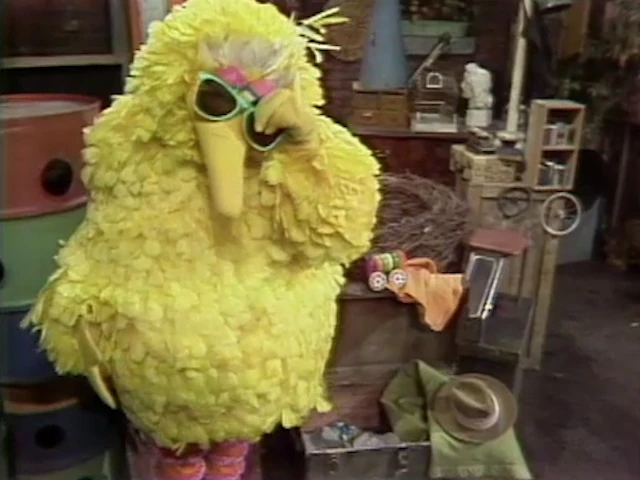 | SCENE 4 | Big Bird gushes over meeting a movie star today and thinks he can be one too, then starts digging through his costume bin.
