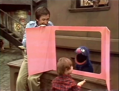Insert | Bob has Jason read the word OPEN. They open the card with the word, revealing Grover, who rewards Jason's efforts with a hug and kiss. (First: Episode 1111) |