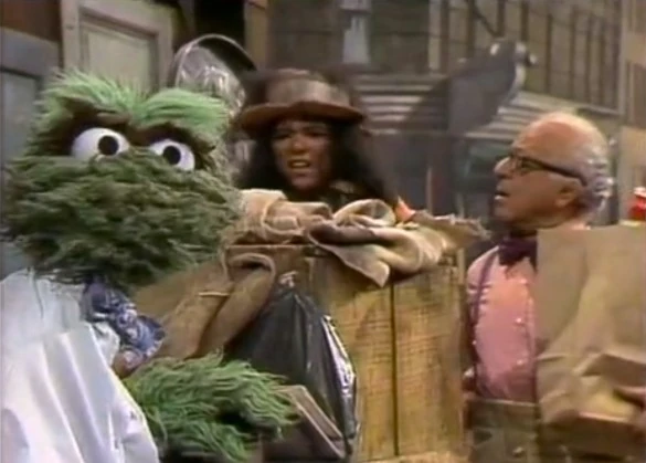 | SCENE 1 | Maria hangs out on the stoop reading when Oscar yells at her to beat it. She tells him she has just as much a right to live how she wants as does Oscar, and gets an idea to switch roles so Oscar can experience what it's like to put up with someone like him on the block. They imagine such a scenario, where Oscar is a neatly-dressed, friendly individual and Maria is the local Grouch residing in a trash can who tells him and Mr. Hooper to get lost. After the fantasy, Maria hopes Oscar has learned something about treating others the way he'd like to be treated. Instead, he wishes Maria would yell at him like in his imagination. | |