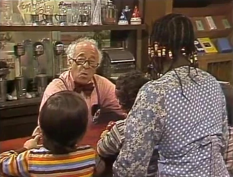 SCENE 3 | After handing out apples to Olivia and the kids, Mr. Hooper and the rest hear the sounds of a jackhammer, explosion and train whistle. Mr. Hooper says that there is some construction work being done about a block from there, but Olivia jokes that the sounds seem to be coming from Hooper's Store's basement. Mr. Hooper laughs it off, but after another train whistle is heard nearby he rushes down to his basement to see if it's coming from there. |