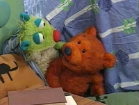 Bear receives a package in the mail containing a tape of soothing sounds. He's eager to sit down and listen to them, but Ojo is worried that the tape will disturb the game of "camping in the woods" she's playing. When she learns it's soothing sounds, she's eager to hear them, but then Treelo shows up and starts making noises of his own. At first, Ojo is irritated, but then Bear helps Treelo with making some sounds that won't bother Ojo. All of this gives Ojo a great idea for a real camping trip. Meanwhile, Tutter is busy dancing, and doesn't want any part of the camping trip when he hears about it. Pip and Pop are interested, though, after Bear tells them about it on their plastic cup telephone.