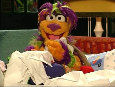 Tingo sings about him feeling sick and every time he sneeze, the force of his sneeze would cause things to happen such as books falling off the shelf. Afterward, he starts to ask Niki for things to do such as getting a box of tissue and his rubber duck for him. He also asks her to open the door when he feels hot and to close the door when he feels cold.