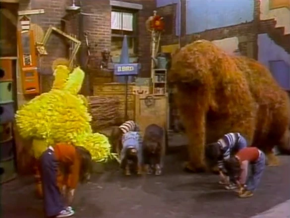 SCENE 4 | For their next exercise, Big Bird tells Snuffy they'll be jogging. Not only will it be healthy, but it will also give Snuffy a chance to finally meet the locals. However, Snuffy winds up jogging in the opposite direction of Big Bird and away from his friends. When Gordon and Olivia point out that Snuffy is nowhere to be seen, Big Bird assumes that he must've run up ahead of him and tries to catch up. |