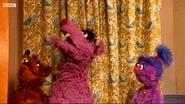 Furgus brings in a band to sing a lullaby to them, which varies between quiet and loud. The wolves instead dance along. Next, they bring in a sheep for them to count, but the wolves end up arguing over how to count it. Cookie Monster brings up some warm milk and cookies, but eats the cookies on his way to the room. Funella tries telling them a story, but they still stay awake.