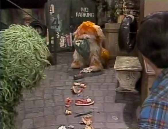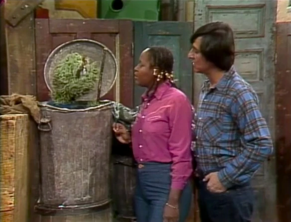 SCENE 4 | Olivia and Luis find Oscar preparing for his role in the Grouch Olympics, taking place in his trash can. They're surprised that Oscar enjoys the positive benefits of exercise, but he prefers the "agony of victory, and the joy of defeat." He darts down to participate in the pole vault event. He flies up and out of his can, then re-enters and bounces around. He proudly declares he's broken a record - plus a lamp, sideboard, and set of dishes. |