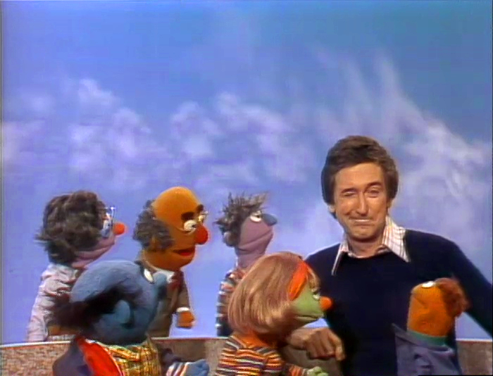 CLOSING SIGNS | Grover holds the Sesame Street sign, while Bert and Ernie hold the CTW sign. |