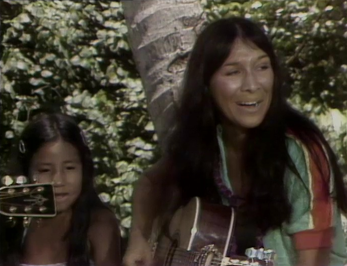 SCENE 2 | Buffy talks with Maria, Boogie, and the kids about the appearance of so many Native Americans in Hawaii. She always feels true to her Indian roots, and sings "I'm an Indian Wherever I Go." |