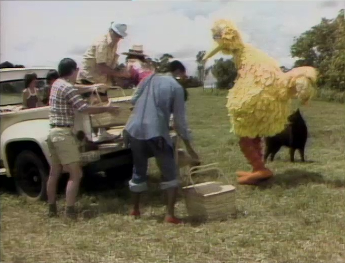 SCENE 5 | Aunty Nona explains to Bob and Mr. Hooper how the hula originated as a means of religious worship, and that men were the first hula dancers. Keola does a contemporary Hawaiian hula about a boy who loved to ride his stubborn donkey. After the performance, Bob and Mr. Hooper want to do some dancing themselves, so Nona teaches them a few basic moves. The closing shot of Mr. Hooper's hip swaying is cut from this re-airing. |