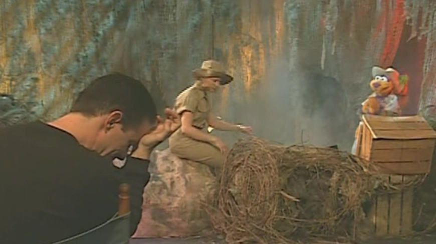 SCENE 1 | Niki and Tingo are watching a scary movie, when Quentin a director they know stops by. He asks Niki if she would like to be in his next movie. Tingo begs to be in it, too. He runs right out and comes back with movie star sunglasses and an ascot. |