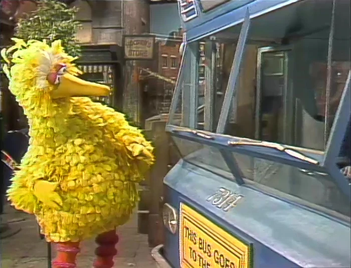 SCENE 1 | Big Bird tells Susan that he's awaiting the arrival of his friends C-3PO and R2-D2, but isn't sure where the bus stop that their bus will arrive at is. Susan shows him the bus stop sign nearby, and soon the next bus pulls up. Big Bird boards the bus and welcomes the two back to Sesame Street. He begins to rattle off all kinds of activities they can do together, but gets so distracted in his excitement he prevents his friends from getting off the bus. The three are soon headed down the block, which Big Bird suggests is another thing they can do while they're in town... |