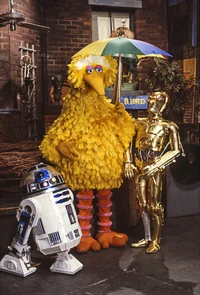 Episode 1396 is the second of two episodes in which C-3PO and R2-D2 from Star Wars visit Sesame Street. The droids first appeared in Episode 1364.