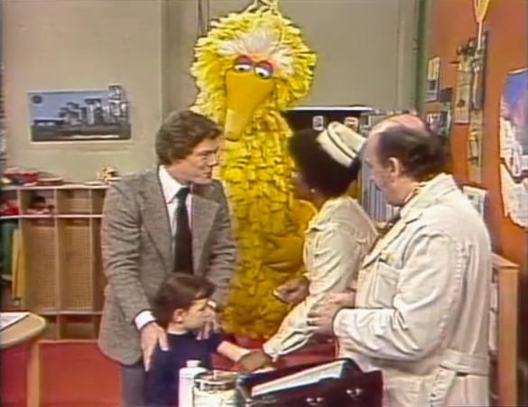 SCENE 2 | Big Bird's turn for a shot is coming up, but he's worried about it hurting. A little girl named Beth goes ahead of him and gets her vaccination to show how minuscule the pain can be. Big Bird is surprised to find how quick and easy the shot is given, and decides to get one. Susan preps his wing and Big Bird puts on a brave face, but doesn't realize that Dr. Sanchez has already given him the shot in just seconds. |