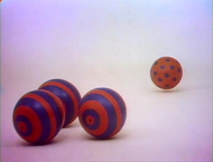 Animation | New Ball in Town: Three striped balls encounter a polka-dotted ball. (First: Episode 0777) |