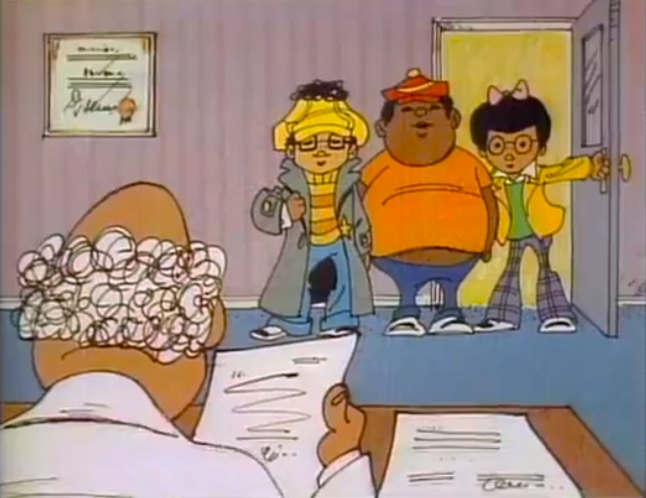 Cartoon | Billy Jo Jive: The doctor asks Billy and Sunset to get Bad News Barton to his office. They eventually bring Bad News Barton to the office, but the whole thing had been a set-up to get Billy Jo Jive to come to the doctor to get a shot. (First: Episode 1173) |