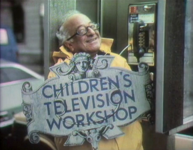 CLOSING SIGNS | Maria holds the Sesame Street sign, while Mr. Hooper holds the CTW sign. |