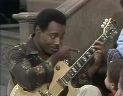 Celebrity | George Benson asks kids to name guitar parts and explains what they are. |